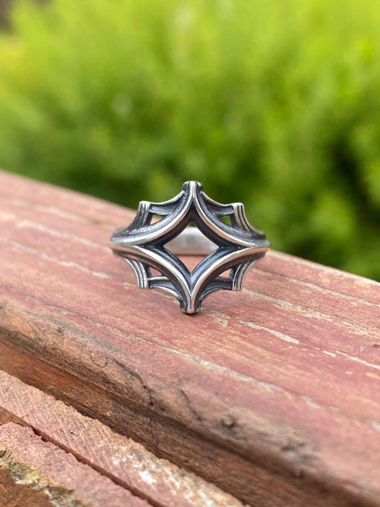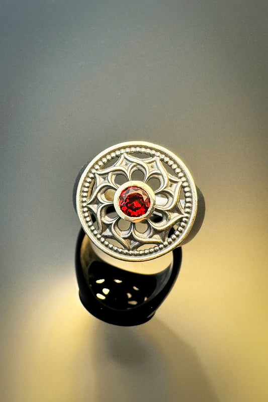 Flower Signet - Mozambique Garnet in Sterling Silver